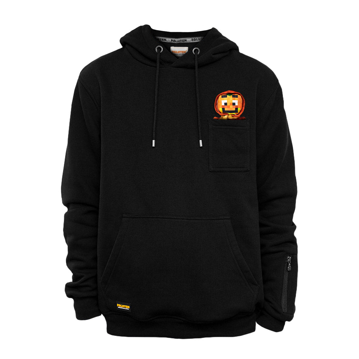 - Reißverschluss Tasche am linken Ärmel mit extra Mini Paluten Gesicht Anhänger